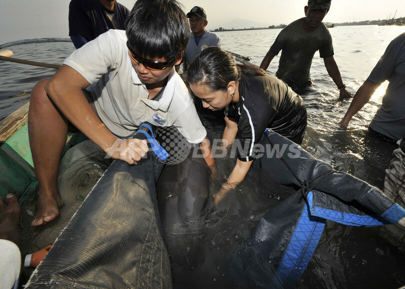 カズハゴンドウの集団座礁、200頭以上を救出 フィリピン