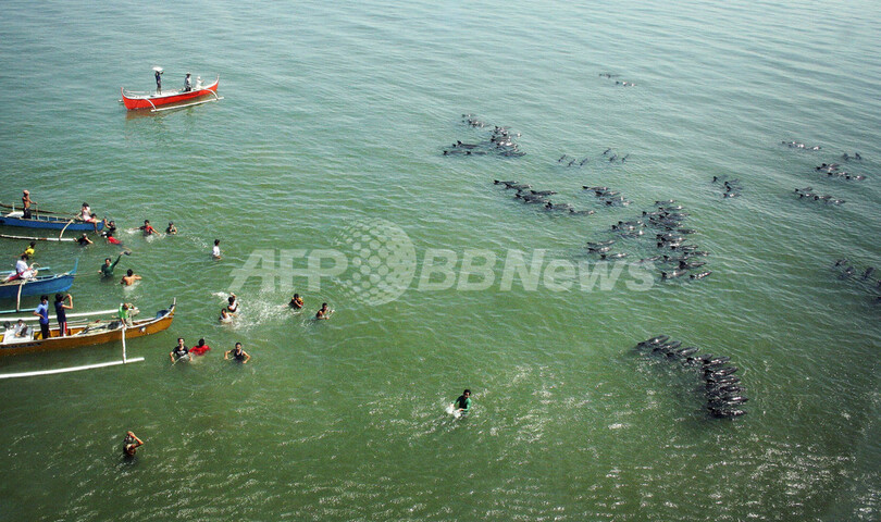 カズハゴンドウの集団座礁、200頭以上を救出 フィリピン