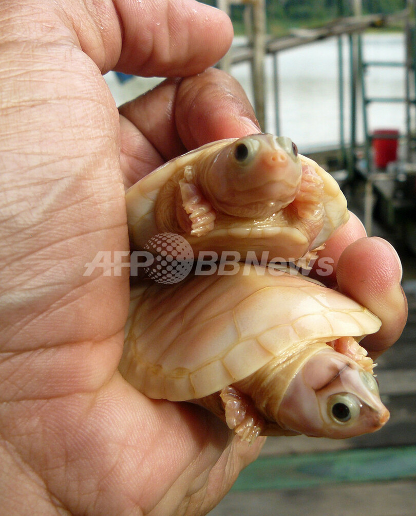 アルビノのカメが誕生 ブラジル・タパウアの生物保護区