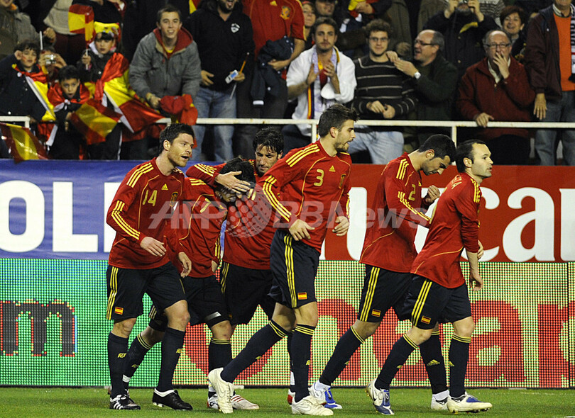 スポーツ サッカー スペイン 親善試合でイングランドに快勝 2009年2月12日 8:23 発信地:セビリア/スペイン [ ヨーロッパ スペイン ] このニュースをシェア ‹ › ❮ 1/18 ❯ サッカー国際親善試合スペイン対イングランド、前半36分に先制ゴールを決めてチームメイトから祝福を受けるスペインのダビド・ビジャ(左2)。(2009年2月11日撮影)(c)AFP/CRISTINA QUICLER 画像作成中 ! 【2月12日 AFP】(写真追加)サッカー国際親善試合、スペイン対イングランド。試合は2-0でスペインが快勝した。前半36分にダビド・ビジャ(David Villa)のゴールで先制したスペインは、後半37分にフェルナンド・ジョレンテ(Fernando Llorente)のゴールで追加点を奪った。(c)AFP/Angus MacKinnon サッカー 一覧へ> メディア・報道関係・法人の方向け 写真・動画 購入のお問合せ>