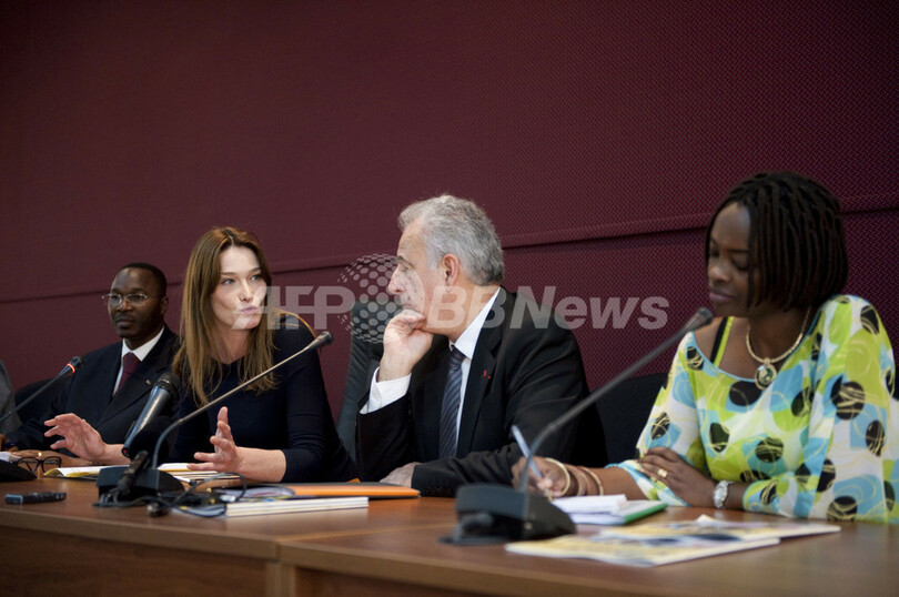 仏大統領夫人のカーラ・ブルーニ(Carla Bruni)さんは、世界エイズ・結核・マラリア対策基金(Global Fund to Fight AIDS, Tuberculosis and Malaria)の親善大使として初の各国歴訪で最終地ブルキナファソを訪れた。カーラ夫人は同国のブレーズ・コンパオレ(Blaise Campaore)大統領夫妻と会談。その後に開かれたエイズ対策委員会CNLSの会議で「ブルキナファソはエイズとの闘いに成功した一例」と語った。写真は首都ワガドゥグ(Ouagadougou)でエイズ基金の会議に出席するカーラ夫人(2009年2月11日撮影)。(c)AFP/Philippe Wojazer
