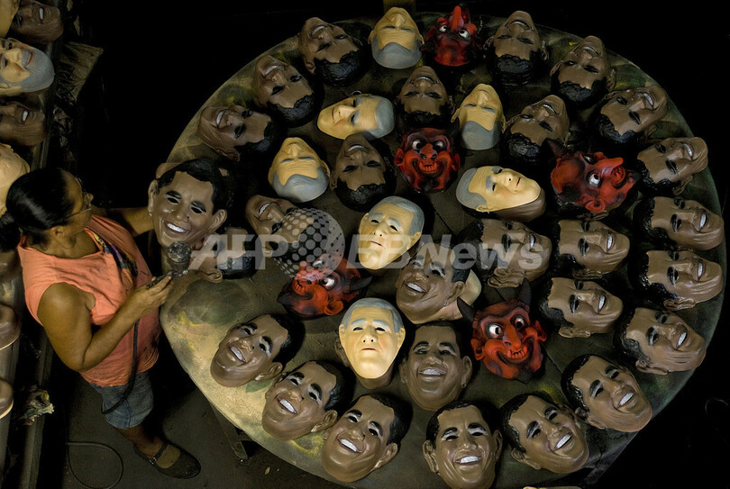 ニュース ライフ リオのカーニバル、オバマ米大統領のマスクが大人気に 2009年2月12日 19:37 発信地:サン・ゴンサーロ/ブラジル [ 中南米 ブラジル ] このニュースをシェア ‹ › ❮ 1/8 ❯ ブラジル最大の祭典リオのカーニバルの開始まで約10日、今年はバラク・オバマ(Barak Obama)米大統領のマスクが人気を呼んでいる。写真はリオデジャネイロ(Rio de Janeiro)の北方75キロのサン・ゴンサーロ(Sao Goncalo)にあるマスク工場で、オバマ大統領のマスクをチェックする従業員。この工場は年間3万個のカーニバル用マスクを製造。今年はすでにオバマ大統領のマスク5000個を欧州に輸出したという(2009年2月10日撮影)。(c)AFP/Antonio Scorza 画像作成中 ! 【2月12日 AFP】ブラジル最大の祭典リオのカーニバルまで約1週間、今年はバラク・オバマ(Barak Obama)米大統領のマスクが人気を呼んでいる。(c)AFP ライフ 一覧へ> メディア・報道関係・法人の方向け 写真・動画 購入のお問合せ>