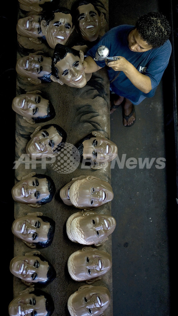 ニュース ライフ リオのカーニバル、オバマ米大統領のマスクが大人気に 2009年2月12日 19:37 発信地:サン・ゴンサーロ/ブラジル [ 中南米 ブラジル ] このニュースをシェア ‹ › ❮ 8/8 ❯ ブラジル最大の祭典リオのカーニバルの開始まで約10日、今年はバラク・オバマ(Barak Obama)米大統領のマスクが人気を呼んでいる。写真はリオデジャネイロ(Rio de Janeiro)の北方75キロのサン・ゴンサーロ(Sao Goncalo)にあるマスク工場で、オバマ大統領のマスクをチェックする従業員。この工場は年間3万個のカーニバル用マスクを製造。今年はすでにオバマ大統領のマスク5000個を欧州に輸出したという(2009年2月10日撮影)。(c)AFP/Antonio Scorza 画像作成中 ! 【2月12日 AFP】ブラジル最大の祭典リオのカーニバルまで約1週間、今年はバラク・オバマ(Barak Obama)米大統領のマスクが人気を呼んでいる。(c)AFP ライフ 一覧へ> メディア・報道関係・法人の方向け 写真・動画 購入のお問合せ>