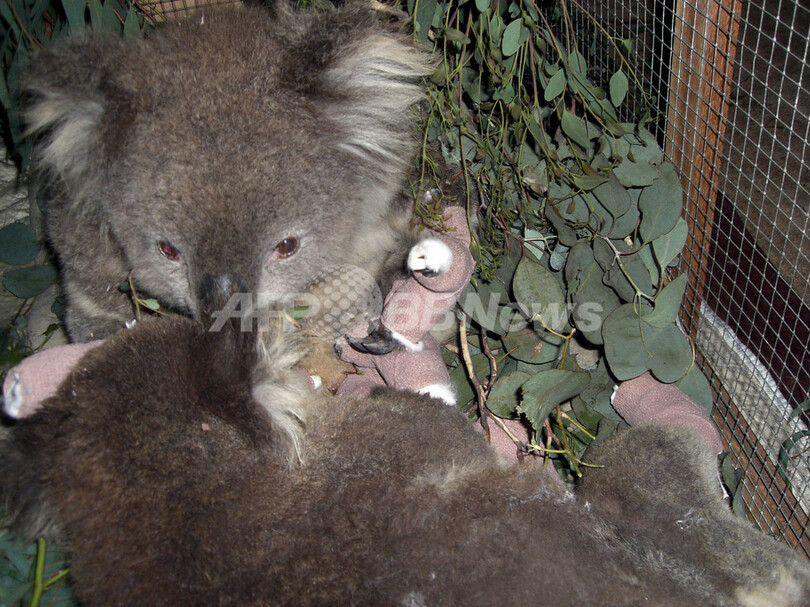 山火事を生き延びたコアラのサム、動画サイトで話題に オーストラリア