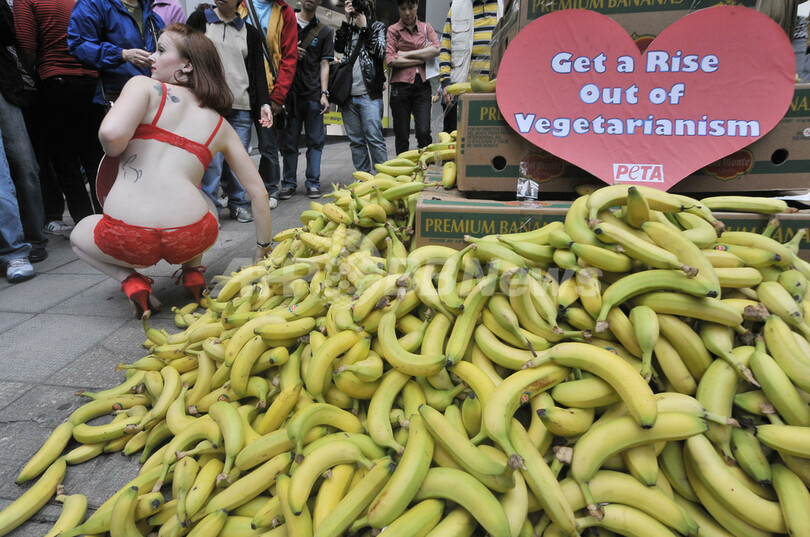 ニュース ライフ 動物愛護団体PETA、赤い下着で菜食訴え 香港 2009年2月13日 16:49 発信地:香港 このニュースをシェア ‹ › ❮ 4/6 ❯ 香港(Hong Kong)の繁華街で、バナナを手渡し菜食主義を訴える動物愛護団体「動物の倫理的扱いを求める人々の会(People for the Ethical Treatment of Animals、PETA)」の完全菜食主義者メンバー(2009年2月13日撮影)。(c)AFP/MIKE CLARKE 画像作成中 ! 【2月13日 AFP】香港(Hong Kong)の繁華街で13日、動物愛護団体「動物の倫理的扱いを求める人々の会(People for the Ethical Treatment of Animals、PETA)」の完全菜食主義者メンバーが赤い下着姿で、「肉食は不能リスクを高める」とのメッセージが添えられたバナナを通行人らに手渡し、菜食主義者に転換するよう訴えた。(c)AFP ライフ 一覧へ> メディア・報道関係・法人の方向け 写真・動画 購入のお問合せ>
