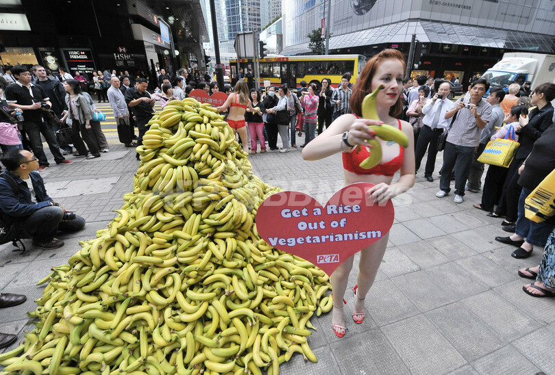 ニュース ライフ 動物愛護団体PETA、赤い下着で菜食訴え 香港 2009年2月13日 16:49 発信地:香港 このニュースをシェア ‹ › ❮ 3/6 ❯ 香港(Hong Kong)の繁華街で、バナナを手渡し菜食主義を訴える動物愛護団体「動物の倫理的扱いを求める人々の会(People for the Ethical Treatment of Animals、PETA)」の完全菜食主義者メンバー(2009年2月13日撮影)。(c)AFP/MIKE CLARKE 画像作成中 ! 【2月13日 AFP】香港(Hong Kong)の繁華街で13日、動物愛護団体「動物の倫理的扱いを求める人々の会(People for the Ethical Treatment of Animals、PETA)」の完全菜食主義者メンバーが赤い下着姿で、「肉食は不能リスクを高める」とのメッセージが添えられたバナナを通行人らに手渡し、菜食主義者に転換するよう訴えた。(c)AFP ライフ 一覧へ> メディア・報道関係・法人の方向け 写真・動画 購入のお問合せ>