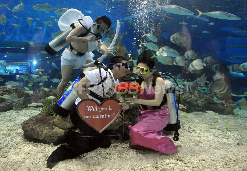 ニュース ライフ こぼれ話 水槽の中心で愛を語る、水族館のバレンタインショー フィリピン 2009年2月13日 22:29 発信地:マニラ/フィリピン [ アジア・オセアニア フィリピン ] このニュースをシェア ‹ › ❮ 4/4 ❯ フィリピンのマニラ湾(Manila Bay)にある海洋テーマパークで行われたバレンタインデー向けの海中ショー(2009年2月13日撮影)。(c)AFP/JAY DIRECTO 画像作成中 ! 【2月13日 AFP】フィリピンのマニラ湾(Manila Bay)にある海洋テーマパークで13日、翌日のバレンタインデーにちなんで、スキューバダイビング用のボンベを背負ったカップルと愛のキューピッドによる海中ショーが披露された。(c)AFP ライフ 一覧へ> メディア・報道関係・法人の方向け 写真・動画 購入のお問合せ>