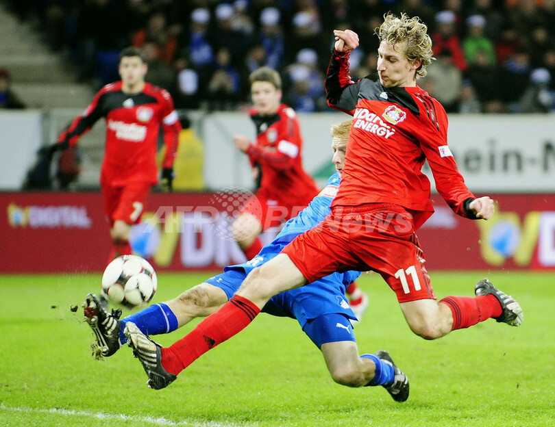 【2月14日 AFP】(一部修正)08-09ドイツ・ブンデスリーガ1部第20節、1899ホッフェンハイム(1899 Hoffenheim)対バイヤー・レバークーゼン(Bayer Leverkusen)。試合はレバークーゼンが4-1で首位ホッフェンハイムを下した。