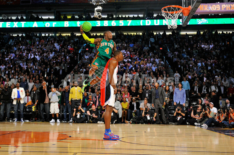【2月15日 AFP】(写真追加、記事更新)第58回NBAオールスターゲーム2009(2009 NBA All-Star game)を控えた14日、会場のUSエアウェイズ・センター(US Airways Center)でオールスターサタデーナイト(All-Star Saturday Night)が開催された。スプライト・スラムダンクコンテスト(Sprite Slam Dunk contest)は、ニューヨーク・ニックス(New York Knicks)のネイト・ロビンソン(Nate Robinson)が、決勝でオーランド・マジック(Orlando Magic)のドワイト・ハワード(Dwight Howard)を下し、2シーズンぶりに優勝した。