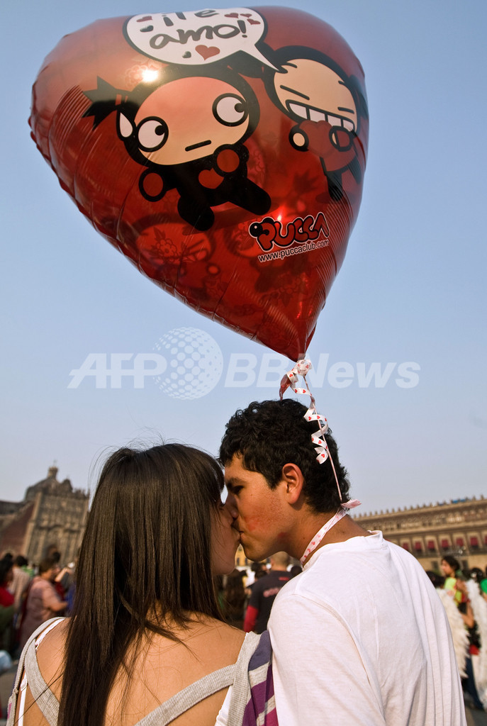 【2月15日 AFP】(一部更新)メキシコ市(Mexico City)のソカロ(Zocalo)広場でバレンタインデーの14日、同時にキスをする人数のギネス世界記録(Guinness World Records)を更新しようという試みが行われ、見事3万9897人の世界新記録が誕生した。