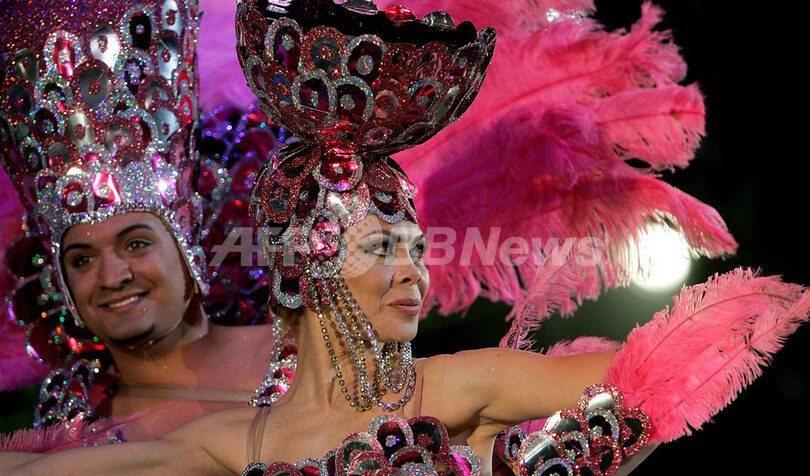 スペイン・カナリア(Canary)諸島テネリフェ(Tenerife)島で、サンタクルス・デ・テネリフェ(Santa Cruz de Tenerife)のカーニバルに参加したダンサー(2009年2月14日撮影)。(c)AFP/Desiree Martin