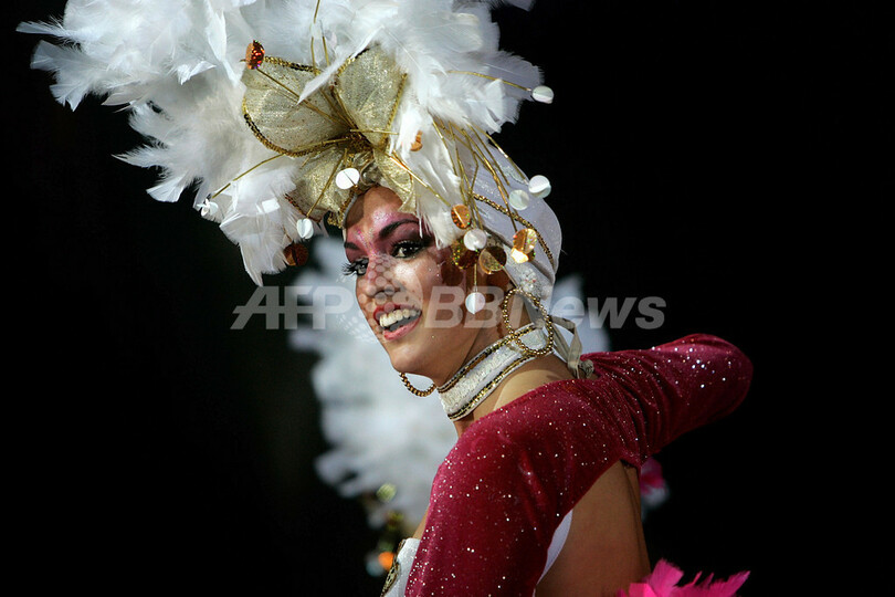 スペイン・カナリア(Canary)諸島テネリフェ(Tenerife)島で、サンタクルス・デ・テネリフェ(Santa Cruz de Tenerife)のカーニバルに参加したダンサー(2009年2月14日撮影)。(c)AFP/Desiree Martin