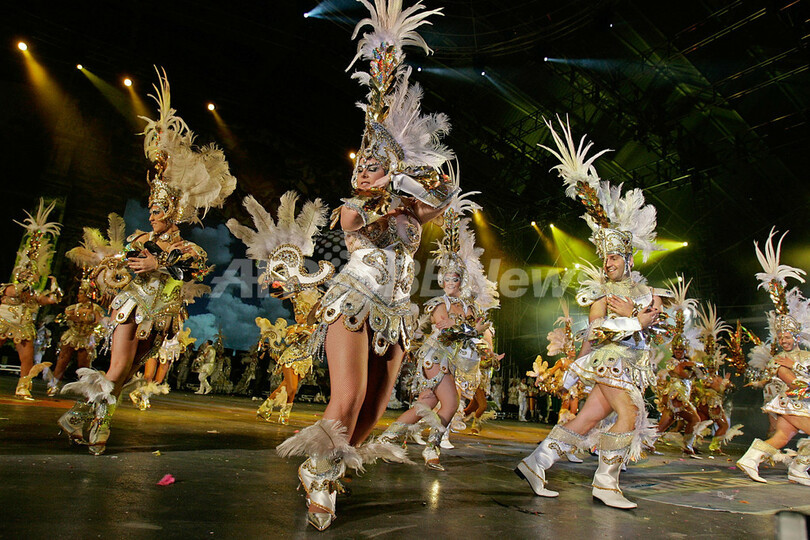 スペイン・カナリア(Canary)諸島テネリフェ(Tenerife)島で、サンタクルス・デ・テネリフェ(Santa Cruz de Tenerife)のカーニバルに参加したダンサー(2009年2月14日撮影)。(c)AFP/Desiree Martin