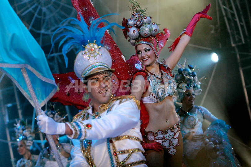 スペイン・カナリア(Canary)諸島テネリフェ(Tenerife)島で、サンタクルス・デ・テネリフェ(Santa Cruz de Tenerife)のカーニバルに参加したダンサー(2009年2月14日撮影)。(c)AFP/Desiree Martin