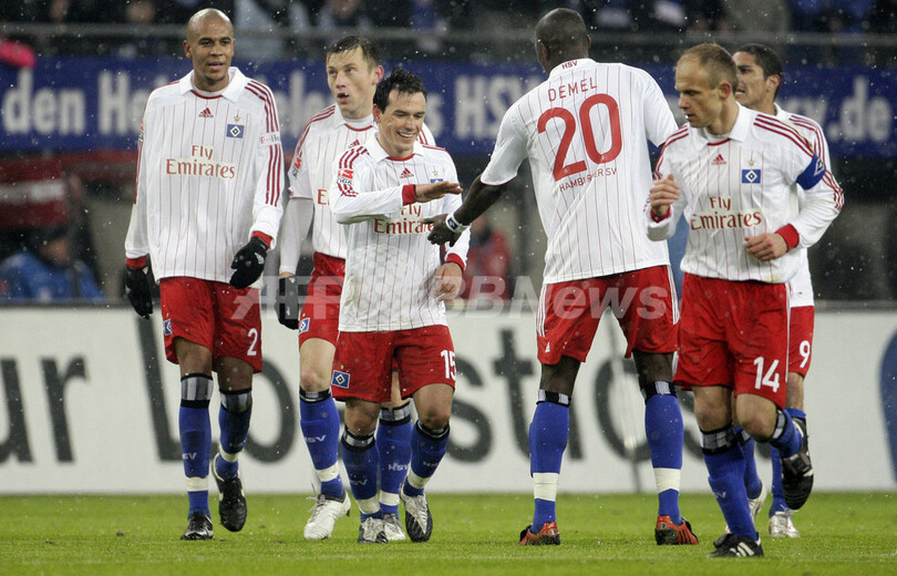 スポーツ サッカー ハンブルガーSV ビーレフェルトに快勝し3位浮上 2009年2月16日 7:48 発信地:ハンブルグ/ドイツ [ ヨーロッパ ドイツ ] このニュースをシェア ‹ › ❮ 3/5 ❯ 前半32分に先制ゴールを決めてチームメイトの祝福を受けるハンブルガーSVのペテル・トロショフスキ(%%Piotr Trochowski%%)。(2009年2月15日撮影)(c)AFP/DDP/ROLAND MAGUNIA 画像作成中 ! 【2月16日 AFP】08-09ドイツ・ブンデスリーガ1部第20節、ハンブルガーSV(Hamburger SV)対アルミニア・ビーレフェルト(Arminia Bielefeld)。試合はハンブルガーSVが2-0で快勝し、3位に浮上した。(c)AFP サッカー 一覧へ> メディア・報道関係・法人の方向け 写真・動画 購入のお問合せ>