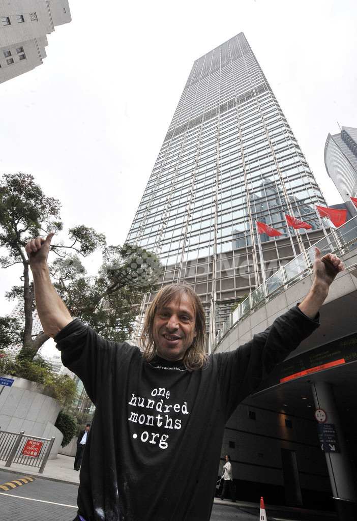 【2月17日 AFP】「フランスのスパイダーマン」ことアラン・ロベール(Alain Robert)さんが17日、香港で最も高い超高層ビル「長江センター(Cheung Kong Centre)」の壁上りを制覇した。ロベールさんは「地球温暖化に注目を集めるため」と述べ、「地球を温暖化から救うために残された日数をカウントダウン」しているインターネット・サイト「onehundredmonths.org」の宣伝バナーを広げるなどし、40分かけて62階まで上りきったところで警察に拘束された。(c)AFP