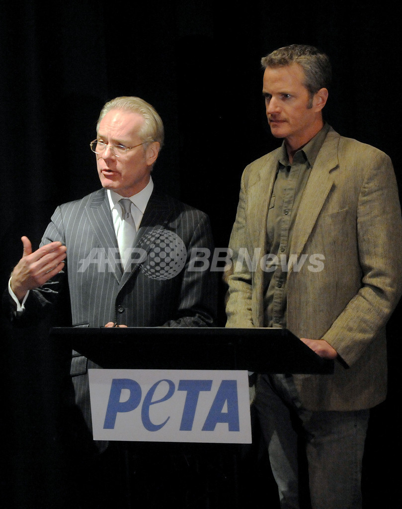 ファッション商品として使われるファーやウール、レザーがいかに動物に危害を加えているかを訴え、消費者に選択を問う内容となっている。ナレーターは、TV番組「プロジェクト・ランウェイ(Project Runway)」にも出演するティム・ガン(Tim Gunn)が担当した。(c)AFP/Getty Images