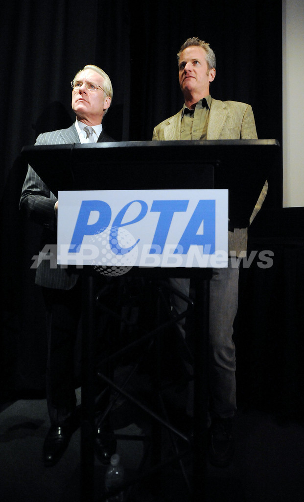 ファッション商品として使われるファーやウール、レザーがいかに動物に危害を加えているかを訴え、消費者に選択を問う内容となっている。ナレーターは、TV番組「プロジェクト・ランウェイ(Project Runway)」にも出演するティム・ガン(Tim Gunn)が担当した。(c)AFP/Getty Images