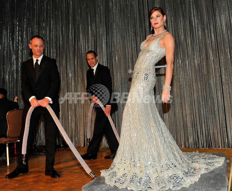 米ビバリーヒルズ(Beverly Hills)で「第11回衣装デザイナー組合賞(Costume Designers Guild Awards)」授賞式に出席した、女優のデブラ・メッシング(Debra Messing、右、2009年2月17日撮影)。(c)AFP/Getty Images/Charley Gallay