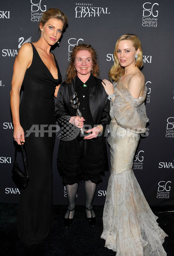 米ビバリーヒルズ(Beverly Hills)で「第11回衣装デザイナー組合賞(Costume Designers Guild Awards)」授賞式に出席した、女優のトリシア・ヘルファー(Tricia Helfer、左)とメリッサ・ジョージ(Melissa George、右)、ドラマ『ジョン・アダムス(John Adams)』でテレビ映画・ミニストーリー部門受賞者を受賞した衣装デザイナーのDonna Zakowska(2009年2月17日撮影)。(c)AFP/Getty Images/Charley Gallay