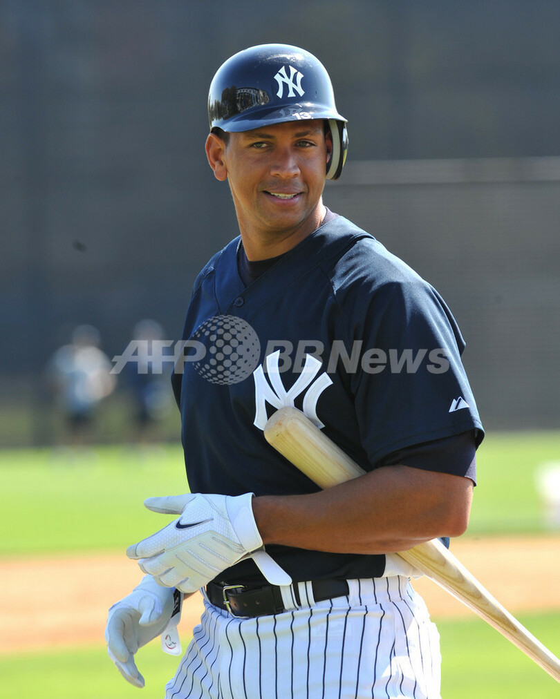 米大リーグ(MLB)、ニューヨーク・ヤンキース(%%New York Yankees%%)は18日、野手陣がフロリダ州タンパのジョージ・M・スタインブレナー(George M. Steinbrenner Field)で行われているキャンプに合流し練習を開始した。写真は打撃練習に臨むアレックス・ロドリゲス(%%Alex Rodriguez%%)。(c)AFP/Getty Images/Al Messerschmidt