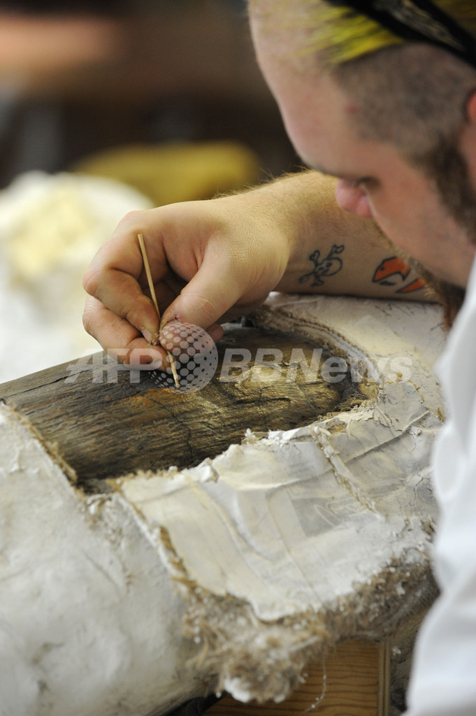 この化石は、2年前に地下駐車場工事の際に発掘されたものの一部で、ほかに木の幹やカメ、カタツムリ、魚介類などの化石や最終氷河期の樫の葉などが見つかった。(c)AFP