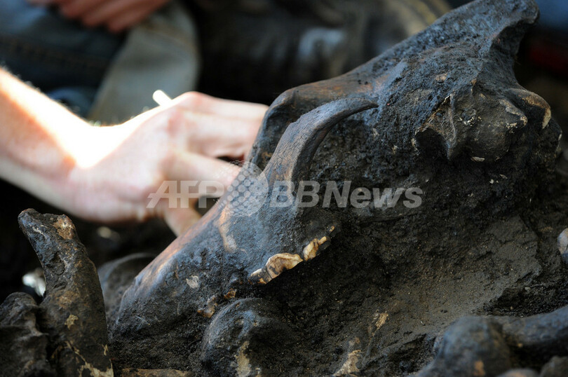 この化石は、2年前に地下駐車場工事の際に発掘されたものの一部で、ほかに木の幹やカメ、カタツムリ、魚介類などの化石や最終氷河期の樫の葉などが見つかった。(c)AFP