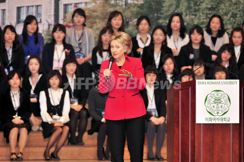 【2月21日 AFP】ヒラリー・クリントン(Hillary Clinton)米国務長官は20日、ソウル(Seoul)の梨花女子大学(Ewha University)を訪れ、2000人の学生を前に、核問題からしばし離れ、女性の権利や夫のビル・クリントン(Bill Clinton)元大統領との関係を語った。