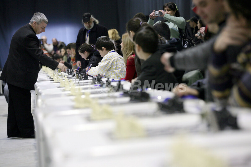 前回の世界記録は、ハンガリー系米国人のスーザン・ポルガー(Susan Polgar)氏が2005年に打ち立てた326ゲームの同時対局。この時の戦績は309勝3敗14分だった。(c)AFP