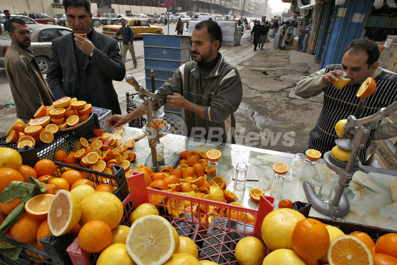 ニュース ライフ バグダッドでフレッシュジュースはいかが 2009年2月22日 19:01 発信地:バグダッド/イラク [ 中東・北アフリカ イラク ] このニュースをシェア ‹ › ❮ 3/3 ❯ イラク・バグダッド(Baghdad)の路上でフレッシュジュースを売る男性(2009年2月21日撮影)。(c)AFP/SABAH ARAR 画像作成中 ! 【2月22日 AFP】イラク・バグダッド(Baghdad)の路上でフレッシュジュースを売る男性。情勢不安が続くディヤラ(Diyala)州の果樹園でオレンジやグレープフルーツを栽培しており、そこからトラックで運んでくるという。お値段は1杯約70セント(約65円)。(c)AFP ライフ 一覧へ> メディア・報道関係・法人の方向け 写真・動画 購入のお問合せ>