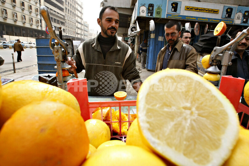 ニュース ライフ バグダッドでフレッシュジュースはいかが 2009年2月22日 19:01 発信地:バグダッド/イラク [ 中東・北アフリカ イラク ] このニュースをシェア ‹ › ❮ 2/3 ❯ イラク・バグダッド(Baghdad)の路上でフレッシュジュースを売る男性(2009年2月21日撮影)。(c)AFP/SABAH ARAR 画像作成中 ! 【2月22日 AFP】イラク・バグダッド(Baghdad)の路上でフレッシュジュースを売る男性。情勢不安が続くディヤラ(Diyala)州の果樹園でオレンジやグレープフルーツを栽培しており、そこからトラックで運んでくるという。お値段は1杯約70セント(約65円)。(c)AFP ライフ 一覧へ> メディア・報道関係・法人の方向け 写真・動画 購入のお問合せ>