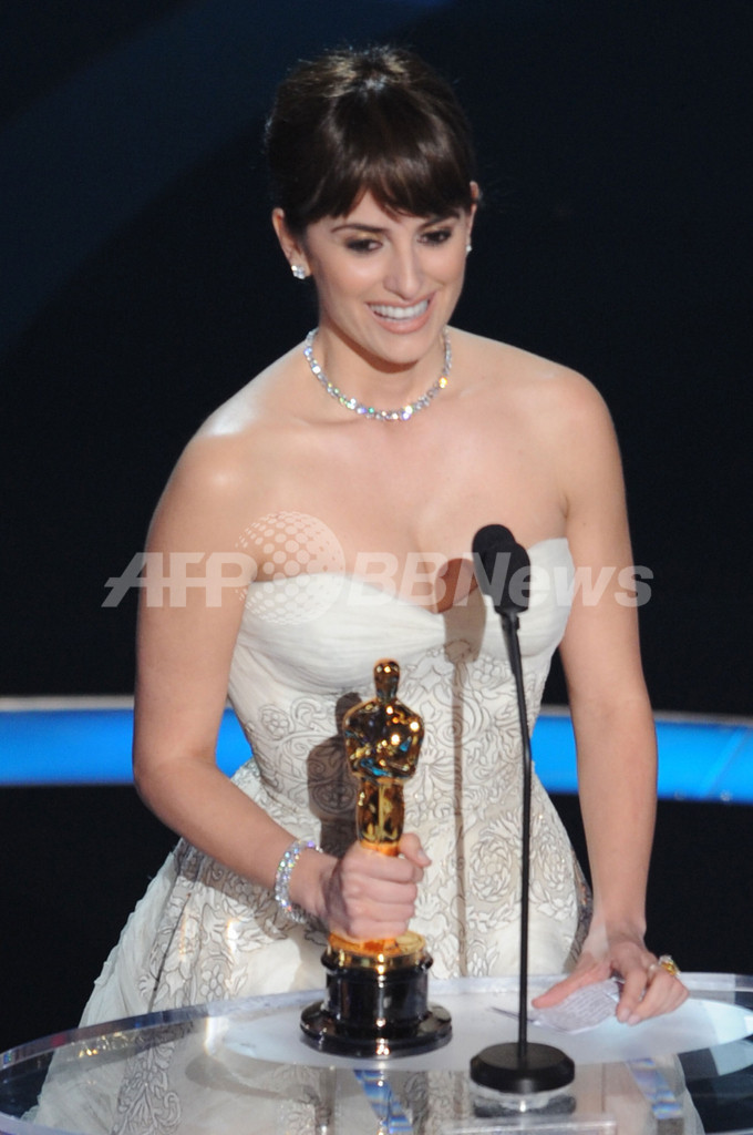 第81回アカデミー賞(Academy Awards)授賞式が22日、米ロサンゼルス(Los Angeles)のコダック・シアター(Kodak Theatre)で開催され、ステージに多くのスターが登場した。写真は、映画『それでも恋するバルセロナ(Vicky Cristina Barcelona)』で助演女優賞を受賞したぺネロぺ・クルス(Penelope Cruz、2009年2月22日撮影)。(c)AFP/Gabriel BOUYS