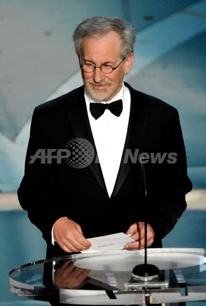 第81回アカデミー賞(Academy Awards)授賞式が22日、米ロサンゼルス(Los Angeles)のコダック・シアター(Kodak Theatre)で開催され、多くのスターがステージに登場した。写真は映画監督スティーヴン・スピルバーグ(Steven Spielberg、2009年2月22日撮影)。(c)AFP/Getty Images/Kevin Winter
