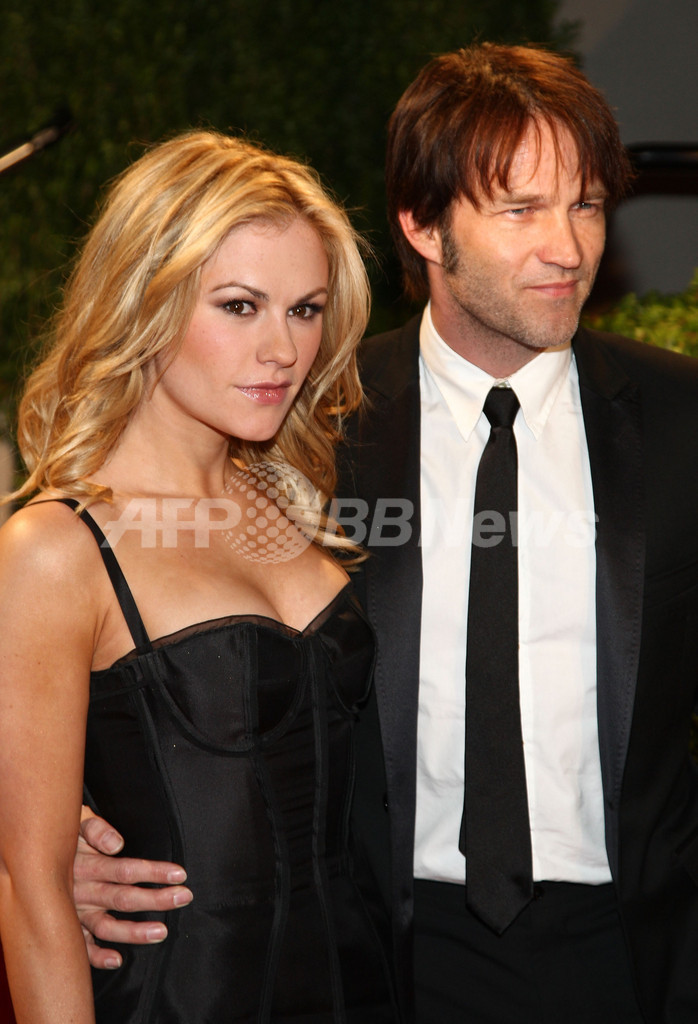 第81回アカデミー賞(Academy Awards)授賞式が行われた22日、米ウェストハリウッド(West Hollywood)でエンターテインメント誌『ヴァニティ・フェア(Vanity Fair)』主催によるオスカーパーティー「Vanity Fair Oscar Party」が開催され、多くの著名人が出席した。写真は女優のアンナ・パキン(Anna Paquin、左)と俳優のスティーヴン・モイヤー(Stephen Moyer、2009年2月22日撮影)。(c)AFP/Getty Images/Alberto E. Rodriguez