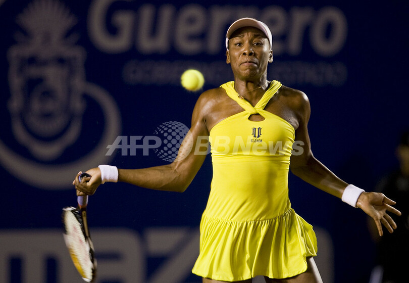 【2月25日 AFP】アビエルト・メキシカーノ・テルセル(Abierto Mexicano TELCEL presented by HSBC)女子シングルス1回戦。大会第1シードのヴィーナス・ウィリアムス(Venus Williams、米国)は、スペインのヌリア・ジャゴステラ・ビベス(Nuria Llagostera Vives)と対戦。ヴィーナスはセットカウント2-1(6-4、4-6、6-2)で勝利し、2回戦に進んだ。(c)AFP
