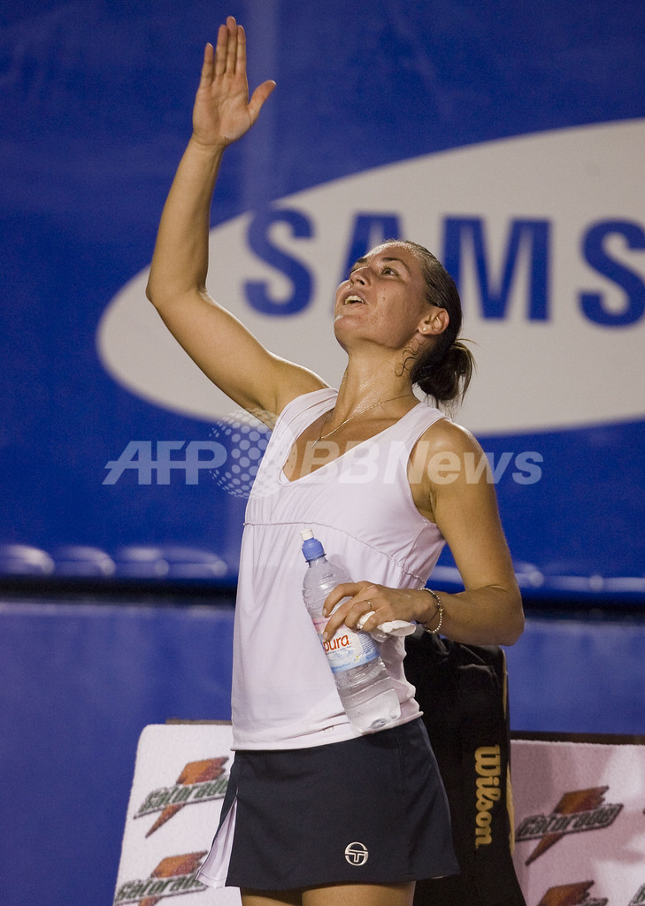 スポーツ テニス ペネッタが準々決勝へ、アビエルト・メキシカーノ 2009年2月26日 15:11 発信地:アカプルコ/メキシコ [ 中南米 メキシコ ] このニュースをシェア ‹ › ❮ 4/4 ❯ 勝利を収め、歓声に投げキスで応えるフラビア・ペネッタ。(2009年2月25日撮影)(c)AFP/ALFREDO ESTRELLA 画像作成中 ! 【2月26日 AFP】アビエルト・メキシカーノ・テルセル(Abierto Mexicano TELCEL presented by HSBC)女子シングルス2回戦。大会第2シードのフラビア・ペネッタ(Flavia Pennetta、イタリア)は、フランスのポーリン・パーメンティア(Pauline Parmentier)と対戦し、セットカウント2-0(6-1、6-3)で勝利を収めて準々決勝へ進出した。(c)AFP テニス 一覧へ> メディア・報道関係・法人の方向け 写真・動画 購入のお問合せ>