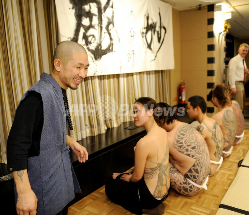 【2月26日 AFP】入れ墨師の彫妙(Horimyo)氏が25日、都内の日本外国特派員協会(Foreign Correspondents' Club of Japan、FCCJ)で制作のデモンストレーションを行った。(c)AFP