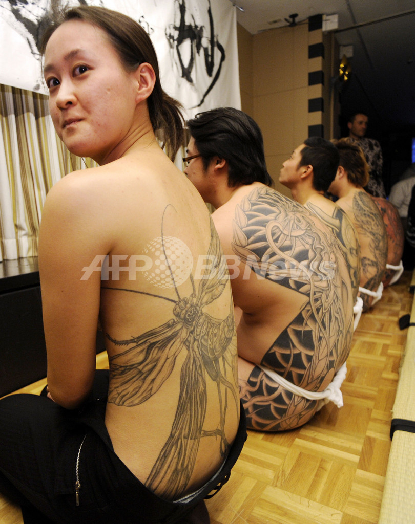 【2月26日 AFP】入れ墨師の彫妙(Horimyo)氏が25日、都内の日本外国特派員協会(Foreign Correspondents' Club of Japan、FCCJ)で制作のデモンストレーションを行った。(c)AFP