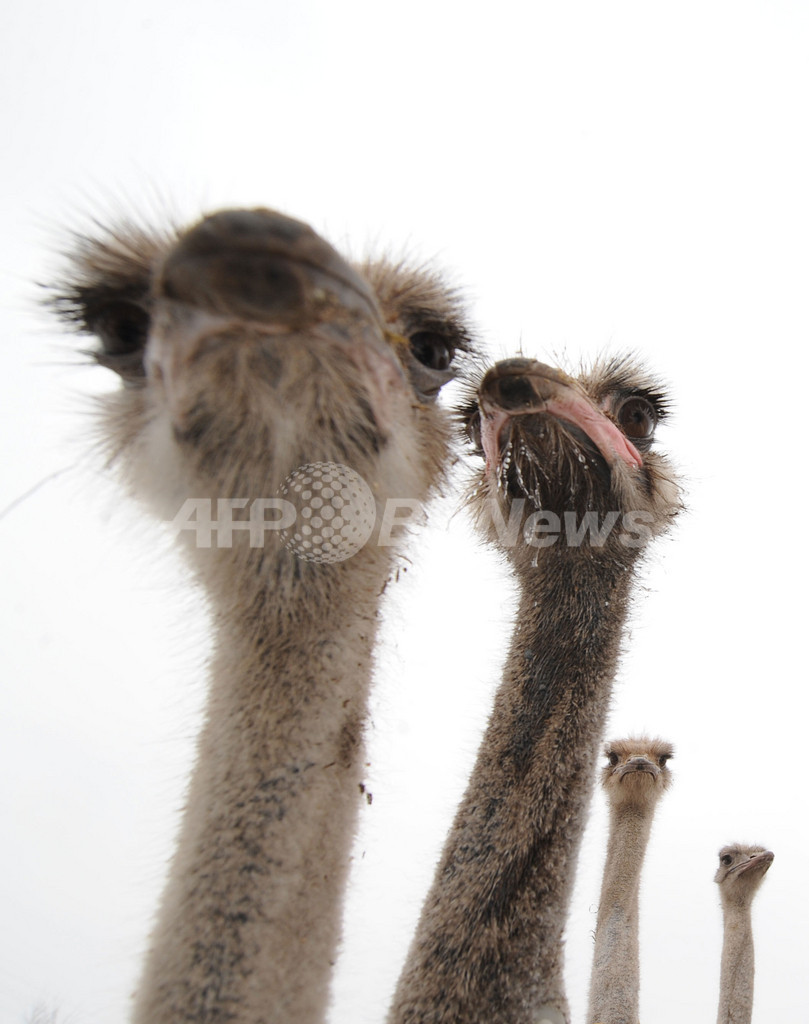 ニュース 政治・経済 「餌ちょうだい」冬でも元気なダチョウたち 2009年2月27日 15:51 発信地:Yasnogorodka/ウクライナ [ ロシア・CIS ウクライナ ] このニュースをシェア ‹ › ❮ 3/5 ❯ ウクライナ・キエフ(Kiev)近郊のYasnogorodkaにあるダチョウ飼育場で、雪の降る朝にフェンス越しに首を伸ばすダチョウたち。ウクライナの冬は厳しいが、ここ数年、その肉や皮、羽の利用を目的に、ダチョウの飼育が行われている。(2009年2月25日撮影)(c)AFP/SERGEI SUPINSKY 画像作成中 ! 【2月27日 AFP】ウクライナ・キエフ(Kiev)近郊のYasnogorodkaにあるダチョウ飼育場で、雪の降る朝にフェンス越しに首を伸ばすダチョウたち。ウクライナの冬は厳しいが、ここ数年、その肉や皮、羽の利用を目的に、ダチョウの飼育が行われている。(c)AFP 政治・経済 一覧へ> メディア・報道関係・法人の方向け 写真・動画 購入のお問合せ>