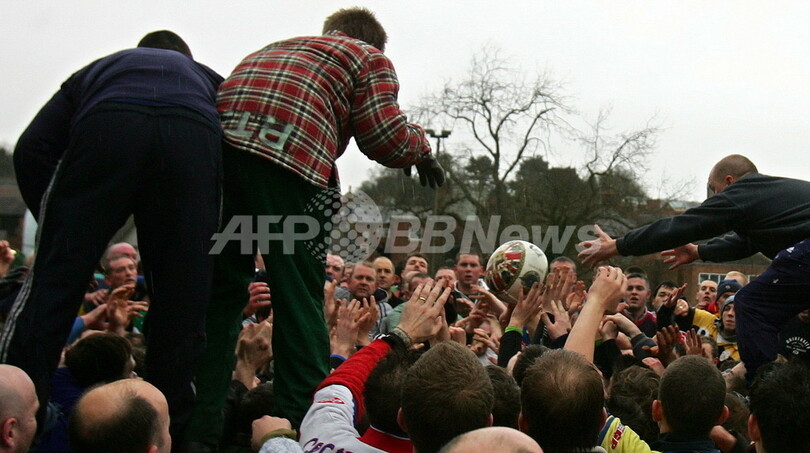 【2月26日 AFP】ほとんどの英国人にとって、一流サッカー選手が集まる英プレミアリーグ(Premier League)でプレーすることなどは、大それた野望にすぎない。だが、川の中までもボールを追いかける英国一クレイジーなフットボール大会、「ロイヤル・シュローブタイド・フットボール(Royal Shrovetide Football)」ならば、老若男女誰もが参加できる。