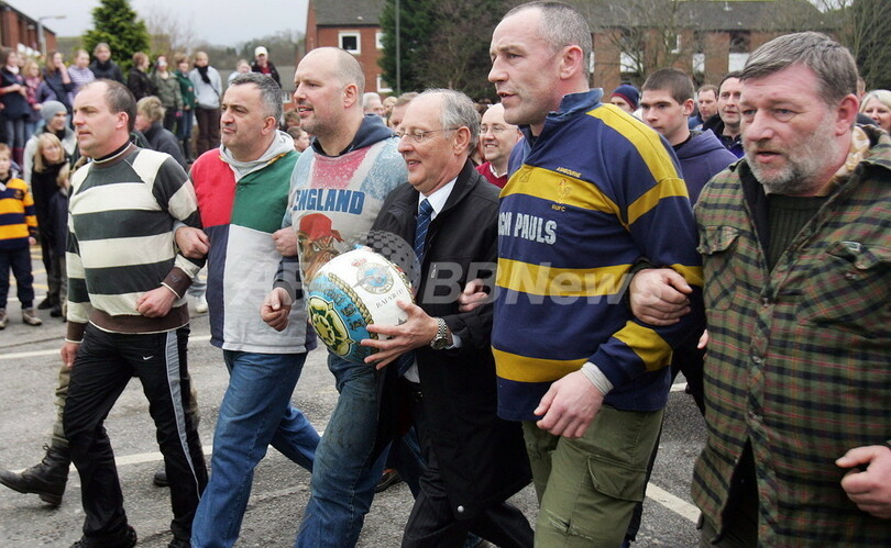 【2月26日 AFP】ほとんどの英国人にとって、一流サッカー選手が集まる英プレミアリーグ(Premier League)でプレーすることなどは、大それた野望にすぎない。だが、川の中までもボールを追いかける英国一クレイジーなフットボール大会、「ロイヤル・シュローブタイド・フットボール(Royal Shrovetide Football)」ならば、老若男女誰もが参加できる。