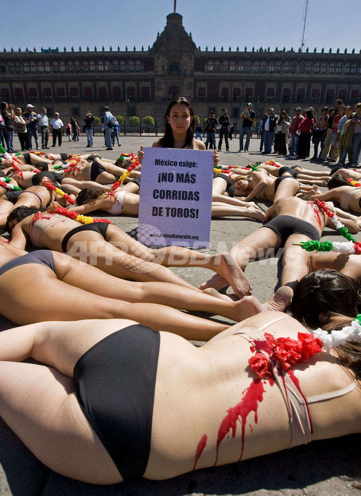 Zocalo Square)で、闘牛廃止を呼び掛けるデモ運動を行った。(c)AFP