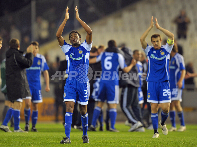 スポーツ サッカー ディナモ・キエフ アウェーゴールでバレンシアを下し決勝トーナメント2回戦へ 2009年2月27日 8:57 発信地:バレンシア/スペイン [ ヨーロッパ スペイン ] このニュースをシェア ‹ › ❮ 2/6 ❯ 決勝トーナメント2回戦進出を決めて歓喜するディナモ・キエフのアンドレイ・ネスマフニー(%%Andriy Nesmachniy%%、右)とベタン(%%Betao%%)。(2009年2月26日撮影)(c)AFP/DIEGO TUSON 画像作成中 ! 【2月27日 AFP】サッカーUEFA杯2008-09(UEFA Cup 2008-09)決勝トーナメント1回戦、バレンシア(Valencia CF)対ディナモ・キエフ(Dynamo Kiev)第2戦。試合は2-2の引き分けに終わり、両チームの2試合合計スコアは3-3となったが、アウェーゴールで上回ったディナモ・キエフが決勝トーナメント2回戦進出を決めた。(c)AFP サッカー 一覧へ> メディア・報道関係・法人の方向け 写真・動画 購入のお問合せ>