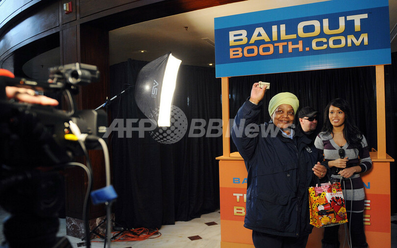 ベイルアウト・ビルは、今月上旬にニューヨーク(New York)に初めて登場。今回は2回目となる。ブースへやってきて、「救済(ベイルアウト)」を必要とする理由を語れば、誰もが現金を受け取ることができる。