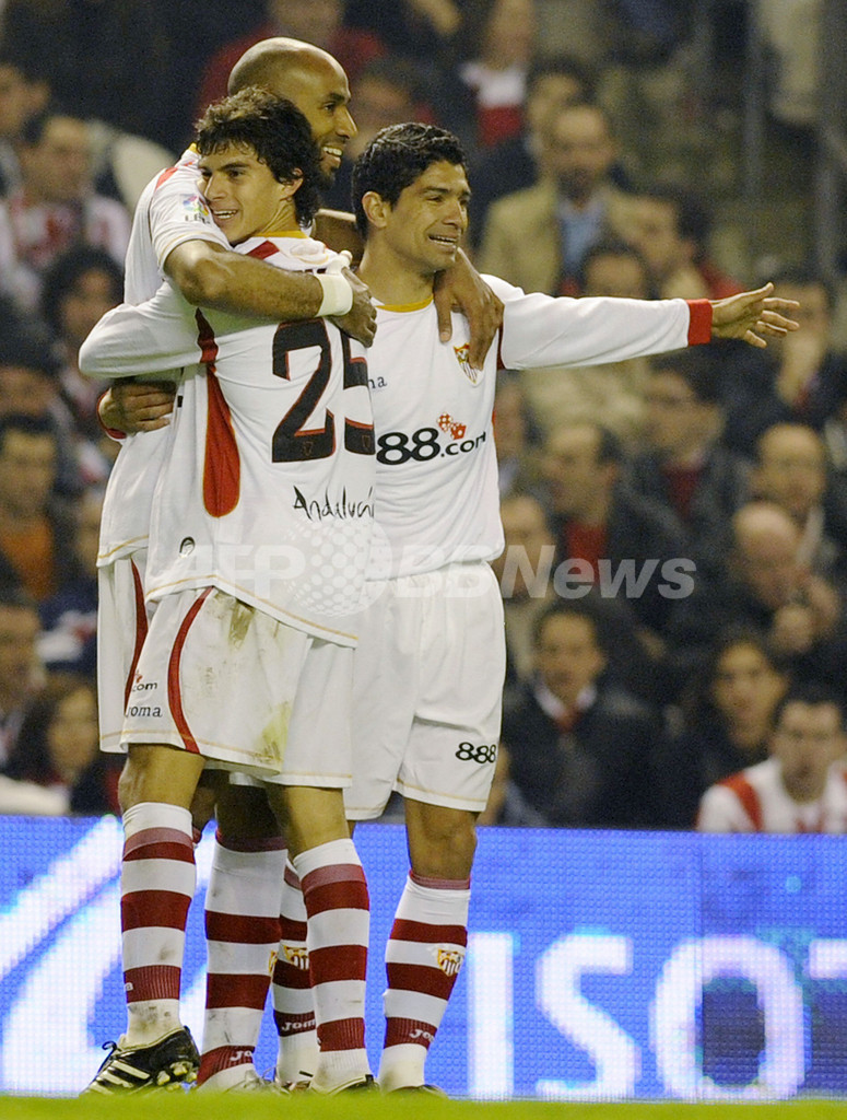 スポーツ サッカー セビージャ アウェーでビルバオを下し3連勝 2009年3月1日 11:41 発信地:ビルバオ/スペイン [ ヨーロッパ スペイン ] このニュースをシェア ‹ › ❮ 1/6 ❯ 後半12分に2得点目を決めてチームメイトと喜びを分かち合うセビージャFCのフレデリック・カヌーテ(%%Frederic Kanoute%%、左)。(2009年2月28日撮影)(c)AFP/RAFA RIVAS 画像作成中 ! 【3月1日 AFP】08-09スペイン1部リーグ・第25節、アスレティック・ビルバオ(Athletic Bilbao)対セビージャFC(Sevilla FC)。試合はセビージャが2-1で勝利し、3連勝を飾った。(c)AFP サッカー 一覧へ> メディア・報道関係・法人の方向け 写真・動画 購入のお問合せ>