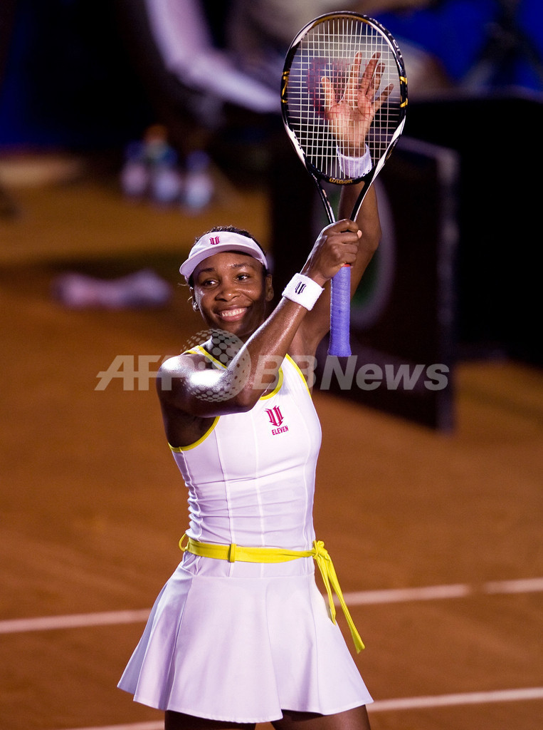 【3月1日 AFP】アビエルト・メキシカーノ・テルセル(Abierto Mexicano TELCEL presented by HSBC)女子シングルス決勝。大会第1シードのヴィーナス・ウィリアムス(Venus Williams、米国)は、大会第2シードのフラビア・ペネッタ(Flavia Pennetta、イタリア)と対戦。ヴィーナスはセットカウント2-0(6-1、6-2)のストレートで勝利し、大会初優勝を飾った。(c)AFP