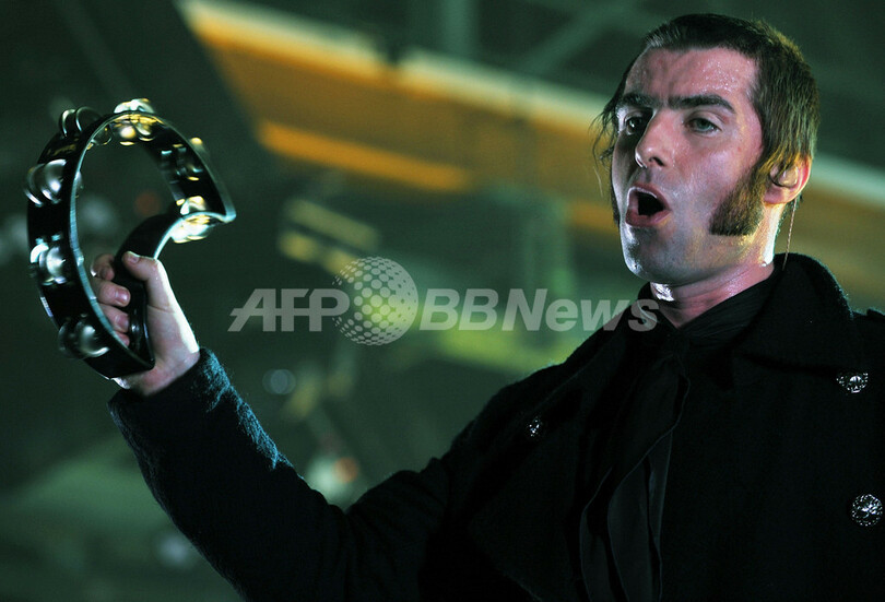 ドイツ・ミュンヘン(Munich)でライブ公演を行うオアシス(Oasis)のボーカル、リアム・ギャラガー(Liam Gallagher、2009年2月27日撮影)。(c)AFP/JOERG KOCH