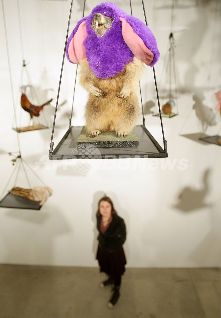 英ロンドン(London)のヘイワード・ギャラリー(Hayward Gallery)で3月4日から5月25日まで、フランス人アーティスト、アネット・メサジェ(Annette Messager)の個展「Annette Messager: The Messengers」が開催される。写真は、同地で行われた記者会見に登場し、自身の作品を紹介するメサジェ(2009年3月2日撮影)。(c)AFP/Leon Neal