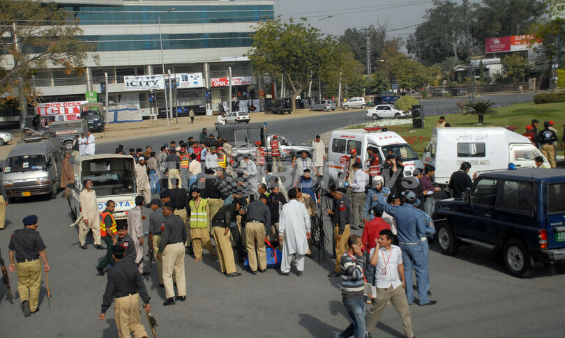 【3月3日 AFP】(写真追加)パキスタンのラホール(Lahore)で3日、パキスタンとの試合のためカダフィ・スタジアム(Gaddafi Stadium)に向かっていたクリケットのスリランカ代表チームを乗せたバスが襲撃された。