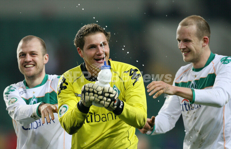 スポーツ サッカー ブレーメン ボルフスブルク下し準決勝進出、ドイツカップ 2009年3月5日 9:48 発信地:ボルフスブルク/ドイツ [ ヨーロッパ ドイツ ] このニュースをシェア ‹ › ❮ 2/5 ❯ 勝利に歓喜するヴェルダー・ブレーメンの(左から)ダニエル・イェンセン(%%Daniel Jensen%%)、ニコ・ペラッツ(%%Nico Pellatz%%)、ペトリ・パサネン(%%Petri Pasanen%%)。(2009年3月4日撮影)(c)AFP/DDP/RONNY HARTMANN 画像作成中 ! 【3月5日 AFP】サッカードイツカップ2008-09(German Cup 2008-09)準々決勝。VfLボルフスブルク(VfL Wolfsburg)対ヴェルダー・ブレーメン(Werder Bremen)。試合はブレーメンが5-2でボルフスブルクに快勝し、準決勝へ進出した。(c)AFP サッカー 一覧へ> メディア・報道関係・法人の方向け 写真・動画 購入のお問合せ>